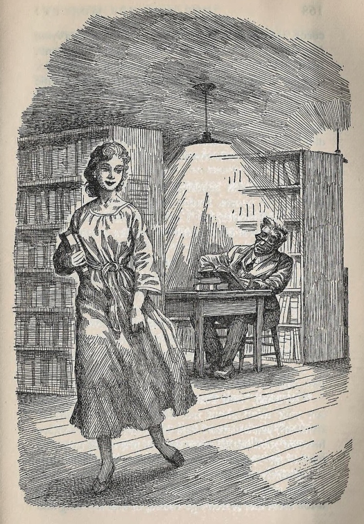 Rhoda drifts for a while, mulling over the dilemma of what she sees as a black and white choice between her perceived role as a wife versus personal fulfillment as an artist. The author handled this theme sensitively and sensibly, though I couldn’t help but think that childless Rhoda, overseeing a small house with the help of a live-in cook-general, had a luxury of a “domestic support system” impossible for those of us in a similar societal-economic position to attain today.