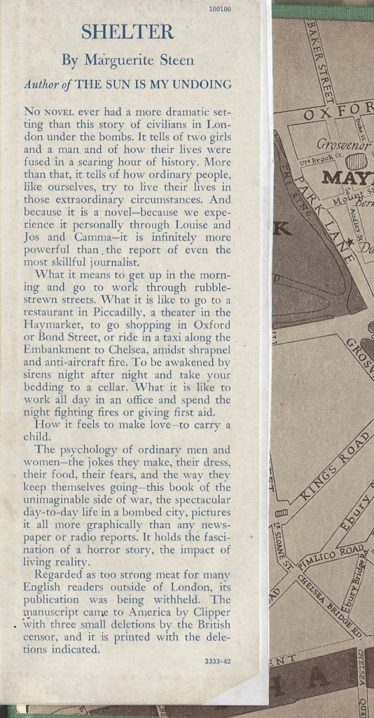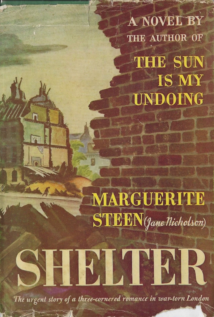 Shelter by Marguerite Steen ~ 1941. This edition: Sun Dial Press, 1942. Originally published under the pseudonym Jane Nicholson. Hardcover. 241 pages.