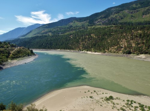 The blue Thompson meets the silt-laden Fraser at Lytton, viewed from the bridge over the Thompson, where Frankie would have stood. The joining of the two rivers is used as a strongly symbolic metaphor throughout Hetty Dorval, its most obvious representation being the meeting and melding of innocence and its opposite.