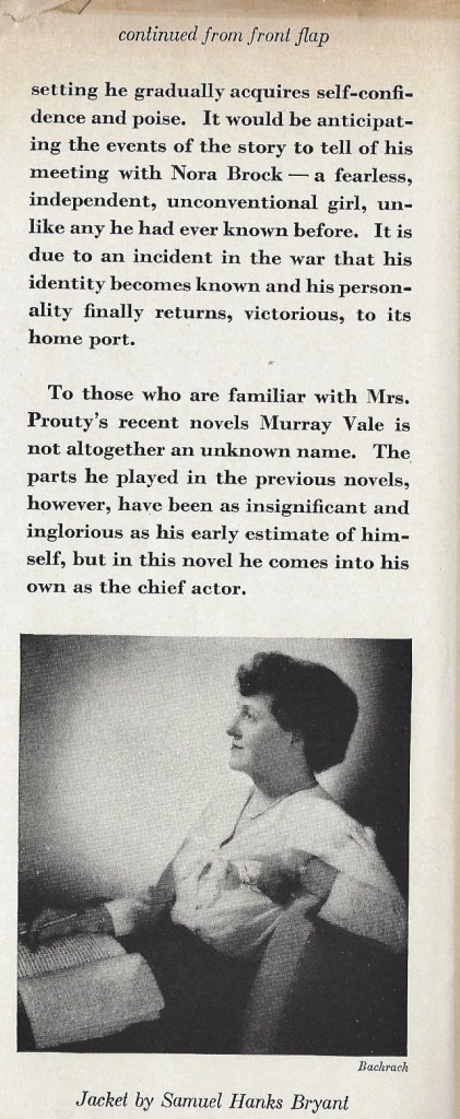 It appears from a cursory visit to ABE that none of Prouty’s books are terribly rare; she was a bestseller in her time, and Stella Dallas for one has been in print fairly continuously since its publication in 1923, due to its (apparently unauthorized) adaptation as a long-running radio soap opera and its subsequent high public profile.