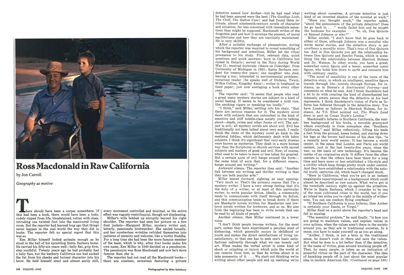 I will leave you with this excerpt from Jon Carrol’s June 1,1972 interview with Kenneth Millar in Esquire magazine. (WordPress is being fussy with linking this morning, but if you Google “Esquire June 1 1972” the whole magazine should pop up in page-by-page format. Be forewarned – you may find yourself reading much more than the Millar article. And possibly mourning the state that physical magazines have come to in these everything-online days.)
