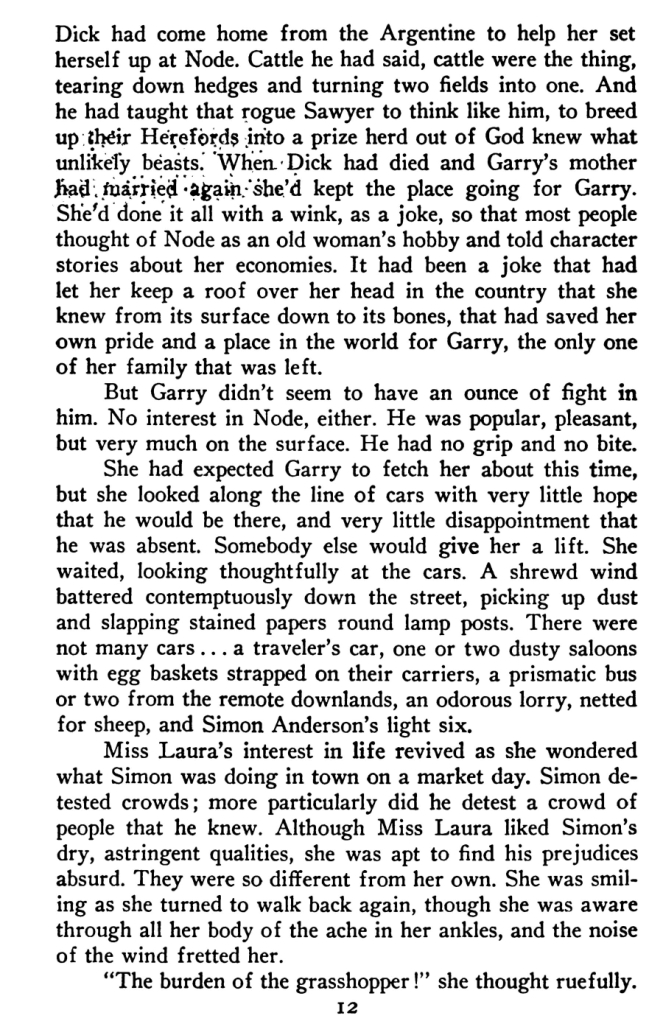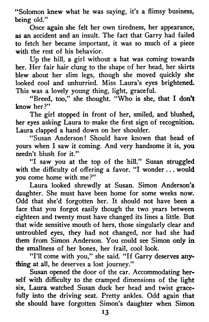 Life, Hilda thought, had played her a queer trick in embedding her, like a fly in amber, in a family in which she didn’t belong. Yet they were her children, only in the simple physical sense. Stretching out in bed with her hands behind her head, she thought that the fact was one likely to trouble nobody but herself. Her lively, inter-dependent family had no time to spare for the history of disappointment and reaccommodation that lay in their parents’ past.