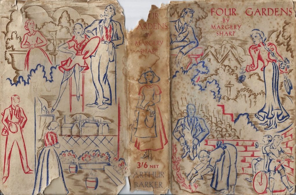 (Background info: The Nutmeg Tree, published in 1937, was one Margery Sharp’s most popularly successful books. The publishers were obviously hoping for another “just like it”; one suspects they were a bit bemused by Harlequin House, which is nothing at all like its immediate predecessor, and did their best to spin it to the reading public with much reference to the previous bestseller.)