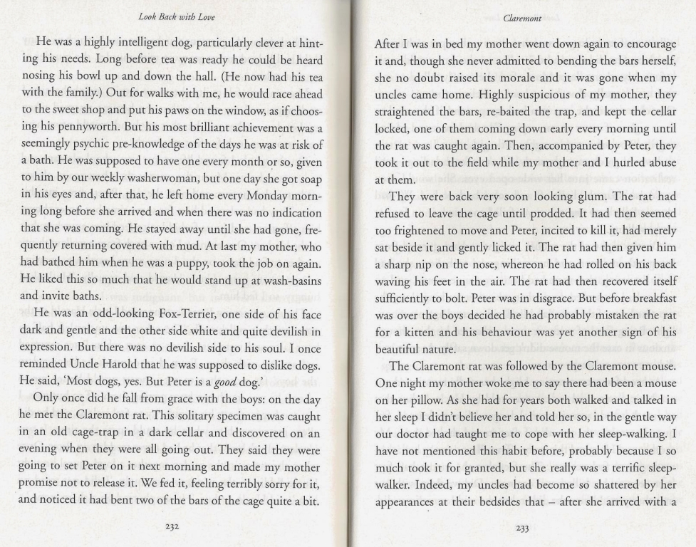 Perhaps I’ll merely recommend that anyone who has read and enjoyed the first volume of her memoirs, Look Back with Love, immediately go on a quest to beg, borrow or (at daunting cost – these were the Great Big Splurge of this summer’s book hunting) perhaps even steel oneself to buy the rest of the books. They are absolutely excellent.